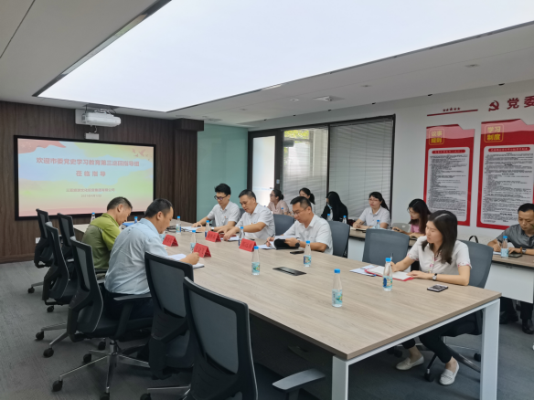 巡回指导组一行第一时间与集团参会人员在会议室进行了座谈,随后到集团办公区域、党员活动室等地方进行了实地走访,查看党史学习教育氛围营造情况。