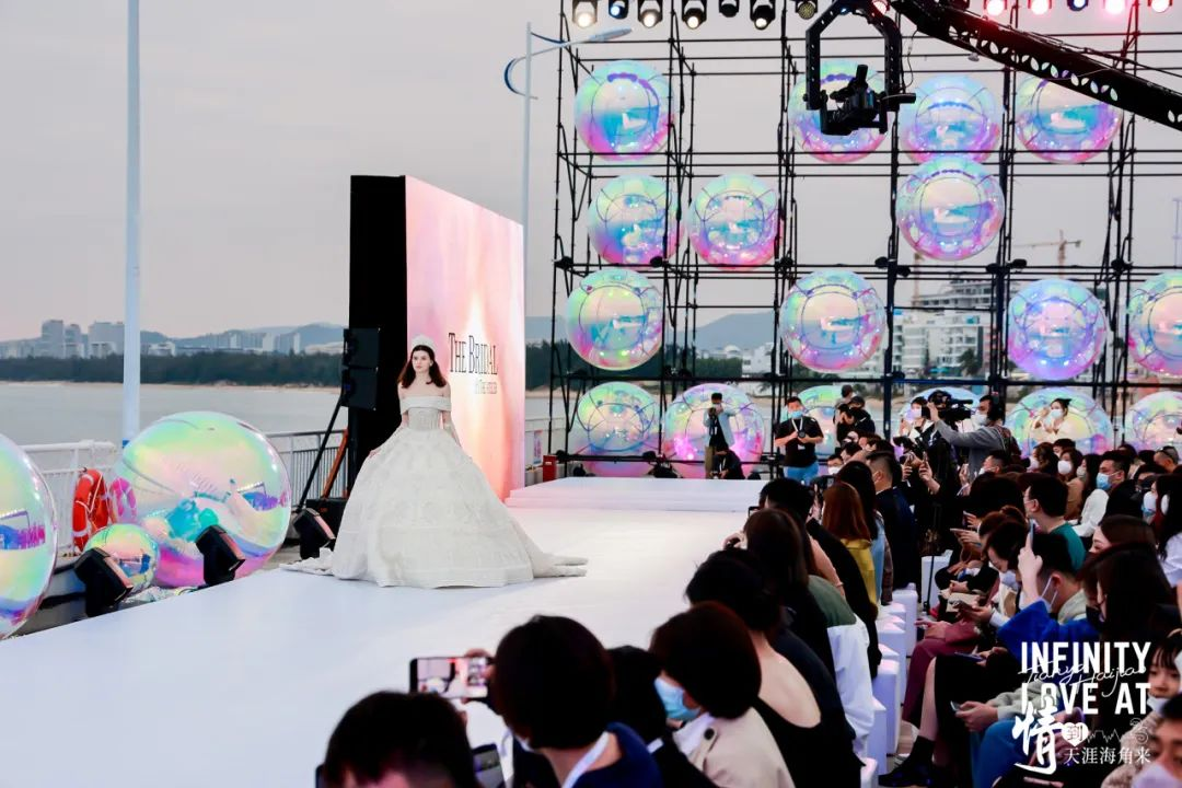 开幕式整体打造轻松浪漫的氛围,邀请知名设计师徐丹助力开幕式舞美设计,由藤薰定制团队,倾力呈现一场全新的中式婚服秀