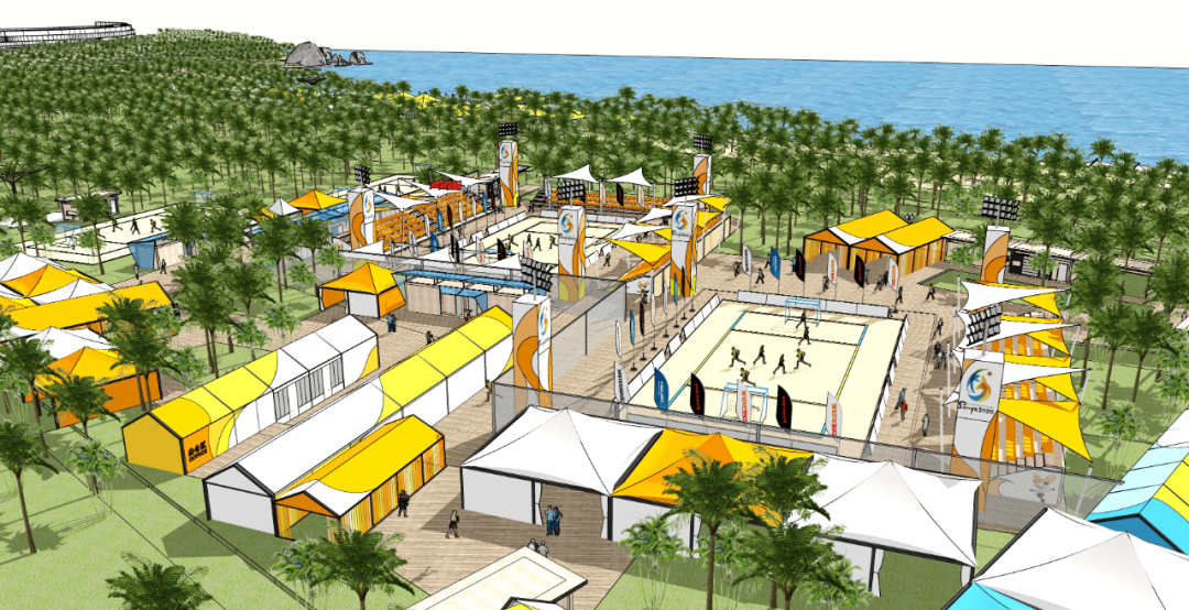 据分析,当天开工的为亚沙会启动区,赛事项目为沙滩手球和攀岩。攀岩赛事共有1个赛场,设有可容纳1000名观众的看台;沙滩手球赛事共有4块场地,其中2个比赛场地,2块训练热身场地,设有可容纳1300名观众的看台。