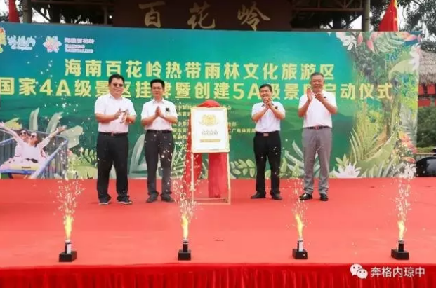 伴随着充满黎苗特色的开场舞蹈,海南百花岭热带雨林文化旅游区国家4A级旅游景区挂牌暨创建5A级景区启动仪式正式拉开序幕。周安伟说,百花岭景区具有得天独厚的区位优势,处于田字形高速的正中间,四通八达,是海南岛中线高速的交汇点,具有丰富的热带雨林资源,是物种“基因宝库”,琼中要以此次成功创建国家4A级景区为契机,抓紧启动5A级景区专项规划工作,加大景区建设投入力度,加快完善景区软硬件设施,加强人才队伍建设,全面提升景区开发、管理和运营水平,打造海南中部首家5A级旅游景区,为有助于我省旅游业开展作出更大的贡献。